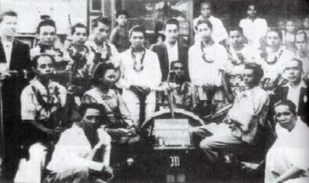 Pancharagam Mustika (1948) P Ramlee holds violin (first from left)